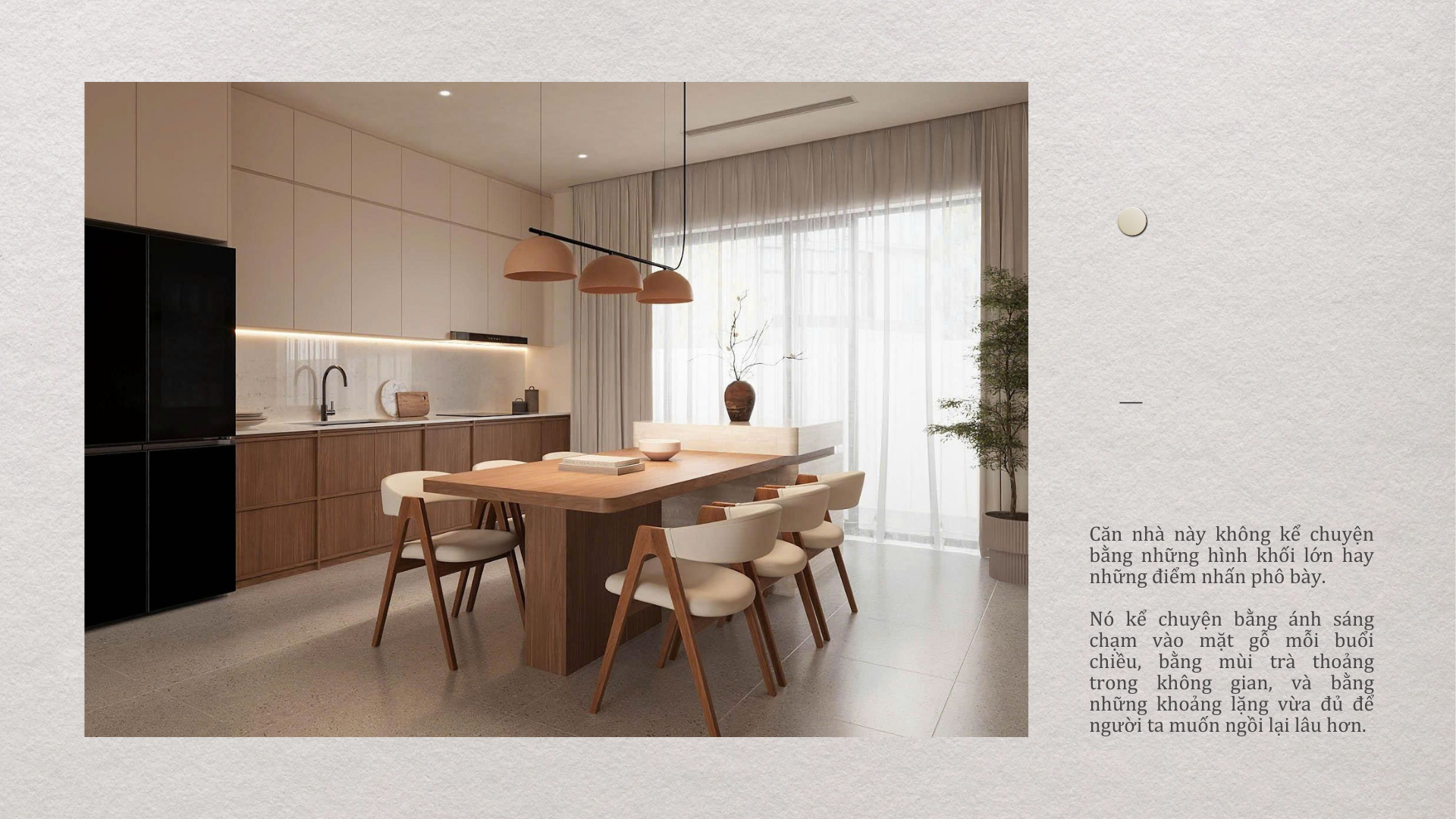 Trong nhịp sống ngày càng gấp gáp, người ta bắt đầu tìm về những không gian không cần gây ấn tượng mạnh, mà chỉ cần đủ để ở lâu, đủ để nghỉ ngơi, đủ để sống thật.