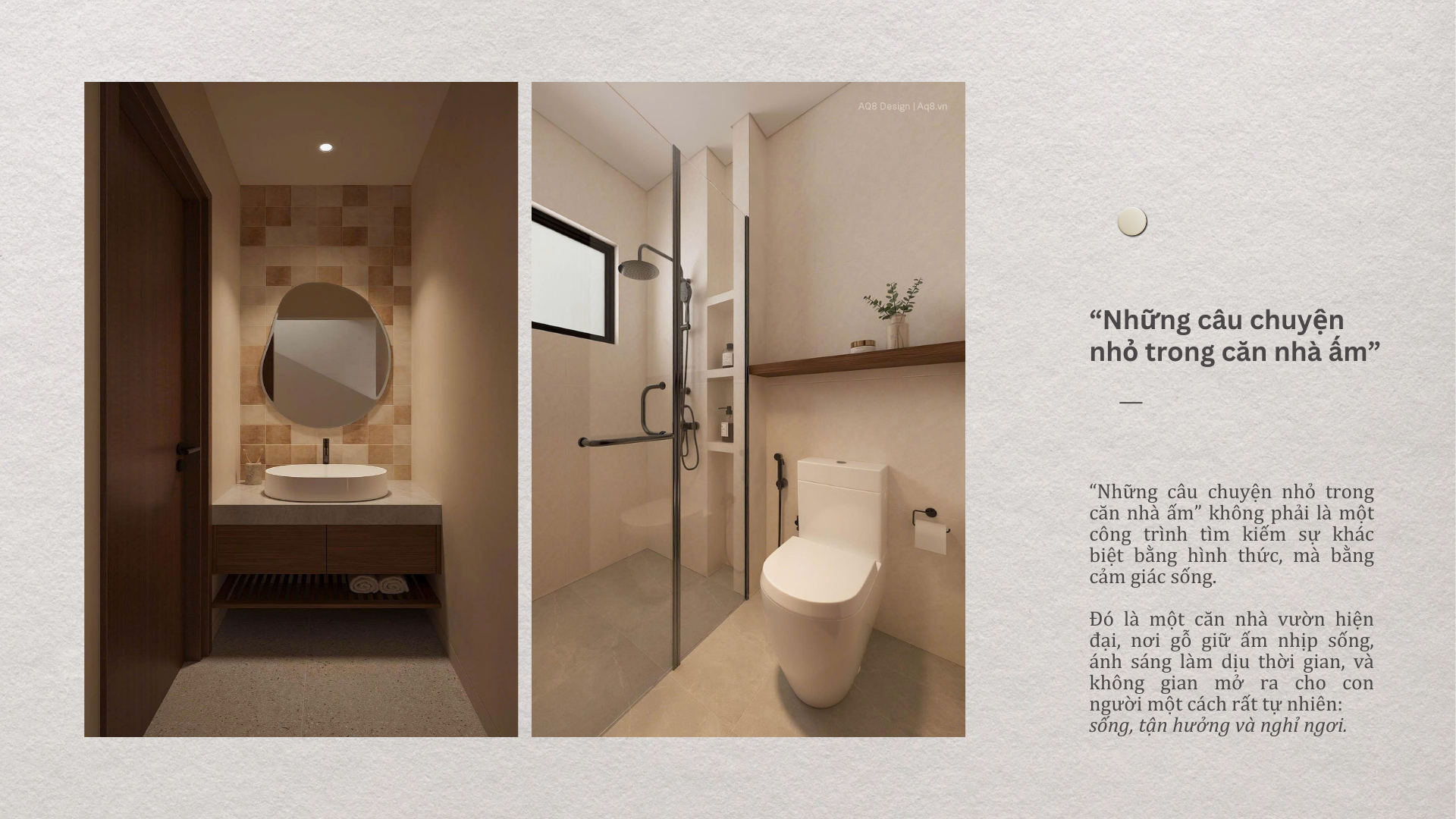 “Những câu chuyện nhỏ trong căn nhà ấm” không phải là một công trình tìm kiếm sự khác biệt bằng hình thức, mà bằng cảm giác sống.