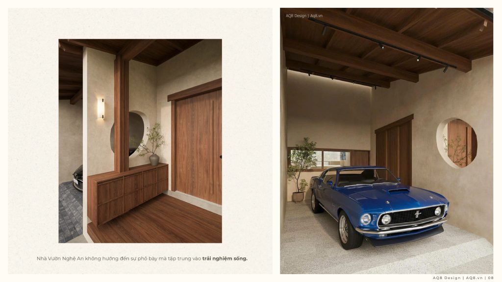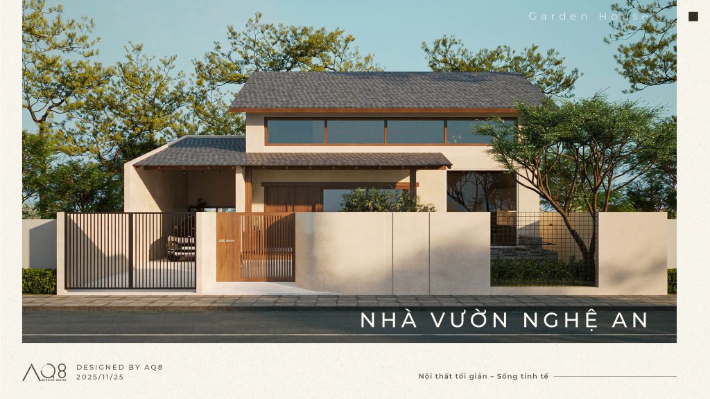 Trong nhịp sống hối hả hôm nay, ai cũng mong tìm cho mình một chốn dừng chân, nơi có thể thở sâu và buông khỏi những áp lực của ngày dài. Nhà vườn Nghệ An, do AQ8 Design thực hiện, là một không gian mang đúng tinh thần ấy. Tối giản nhưng tinh tế, mộc mạc nhưng đủ đầy – nhà như mở ra một cách sống chậm, dịu dàng và kết nối hơn với thiên nhiên.