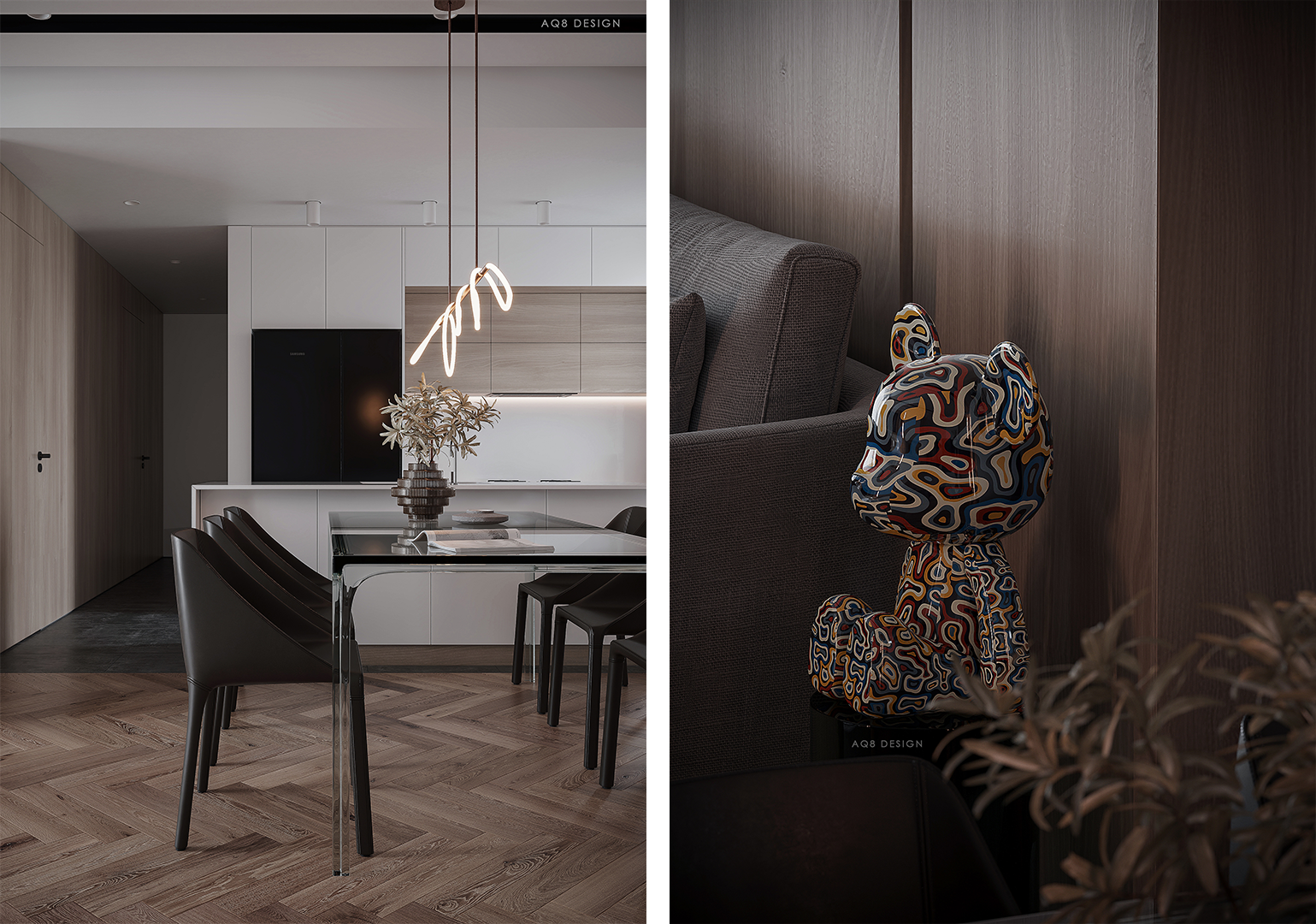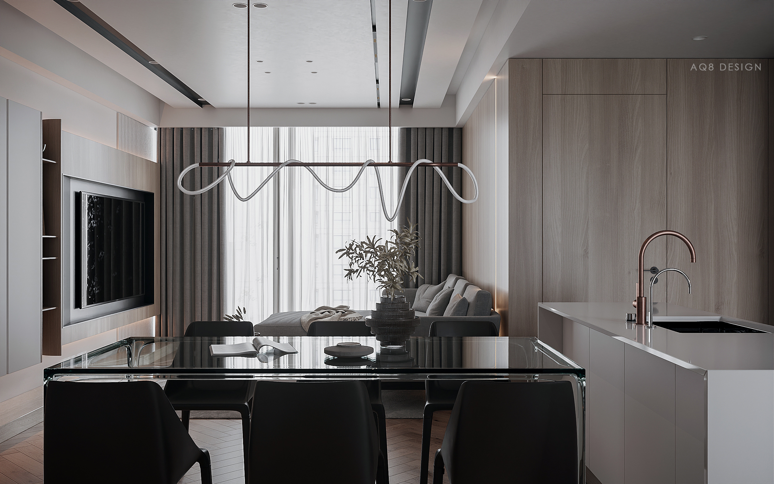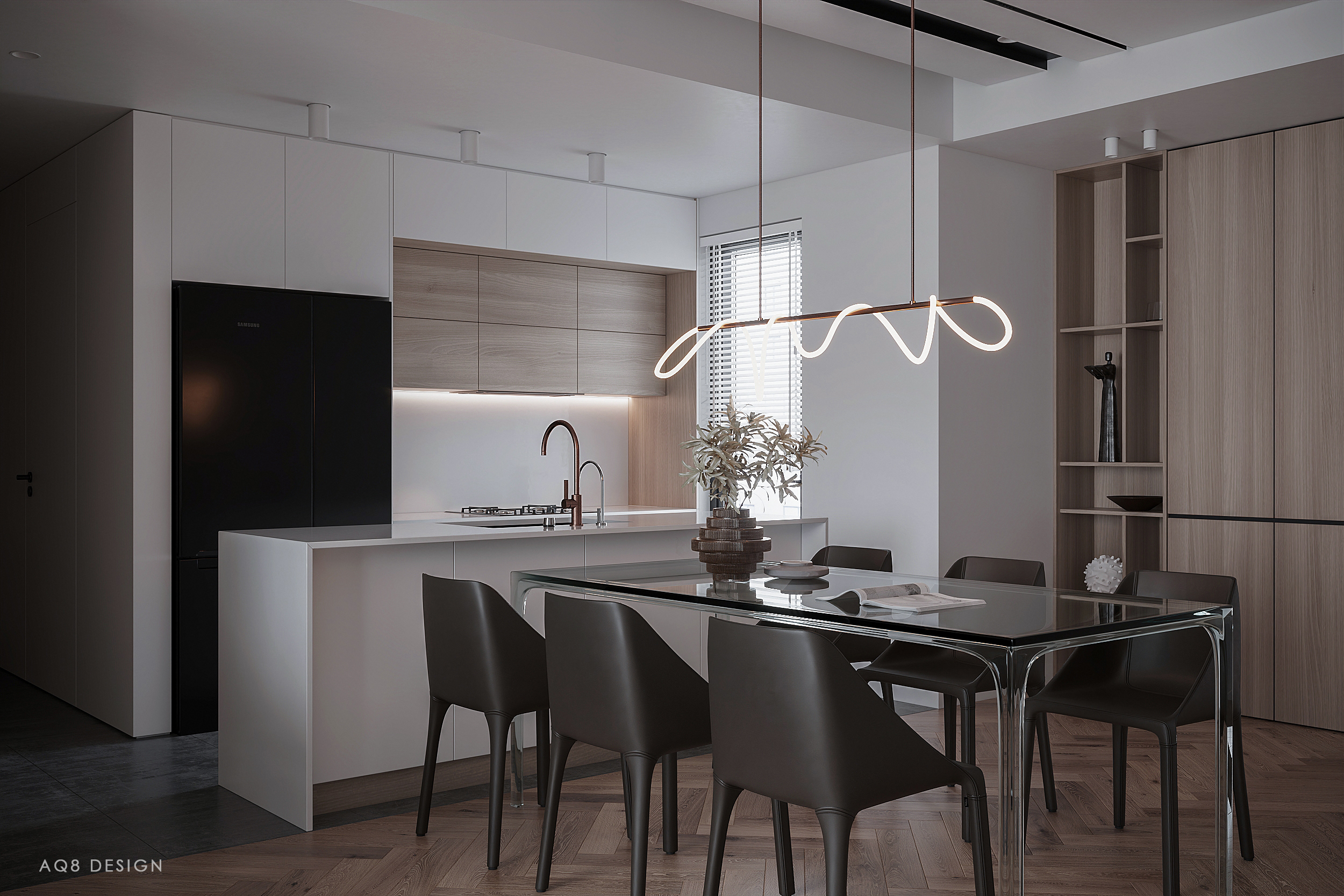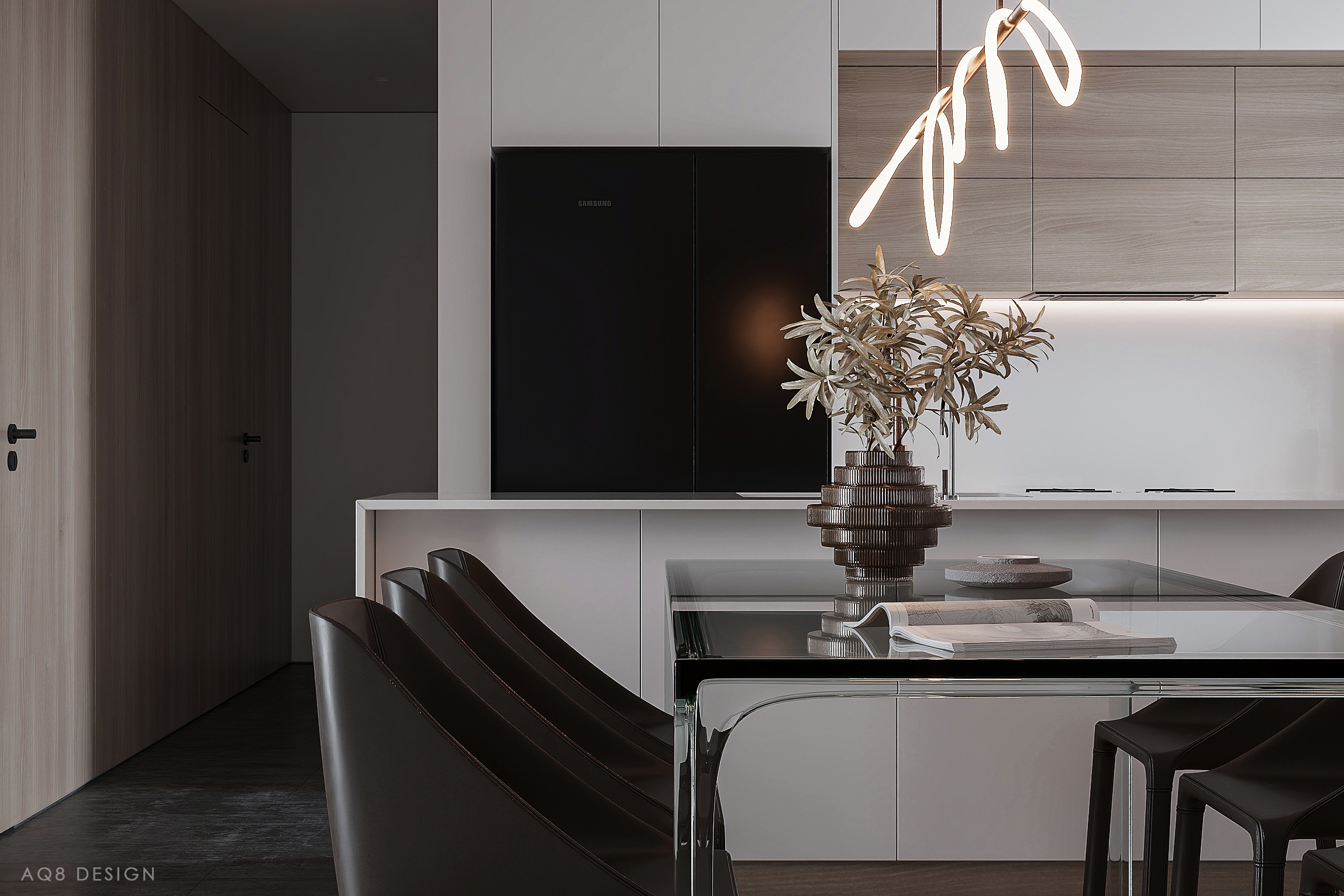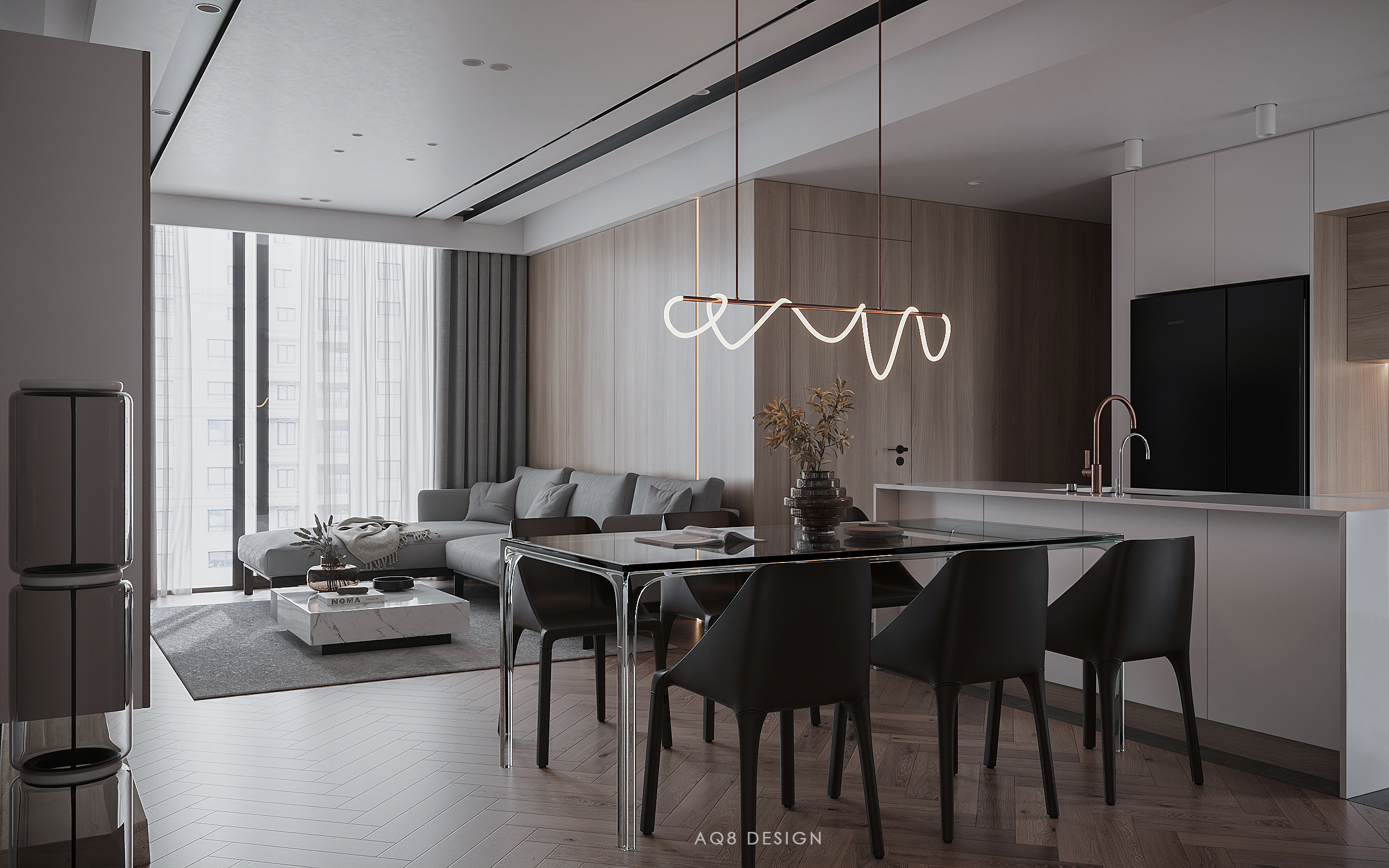 Thiết kế và thi công căn hộ ở tiêu chuẩn cao luôn đòi hỏi kinh nghiệm và tâm huyết của đơn vị thiết kế. AQ8 là đơn vị có tiếng trong việc định hình nên phong cách tối giản và thanh lịch.Sự tỉ mỉ và chỉn chu trong thiết kế là điều mà AQ8 luôn hướng tới.